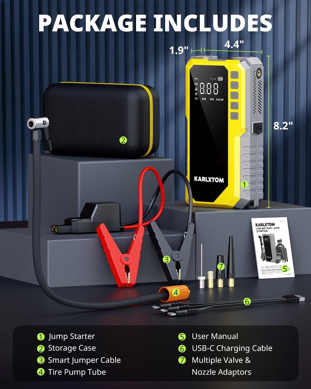 Must-have para cualquier conductor. La combinaci¨®n de arrancador y compresor es genial. Funciona con diferentes tipos de coches, y el display es claro para ver la presi¨®n de los neum¨¢ticos.